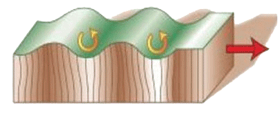 Surface waves are named after their restricted movement to the near-earth surface. They are larger in amplitude (amount of ground displacement) than the body waves of an earthquake. Therefore, most of the shaking and resultant structural damage from earthquakes is caused by these waves. Surface waves are divided into two types: Love waves and Rayleigh waves