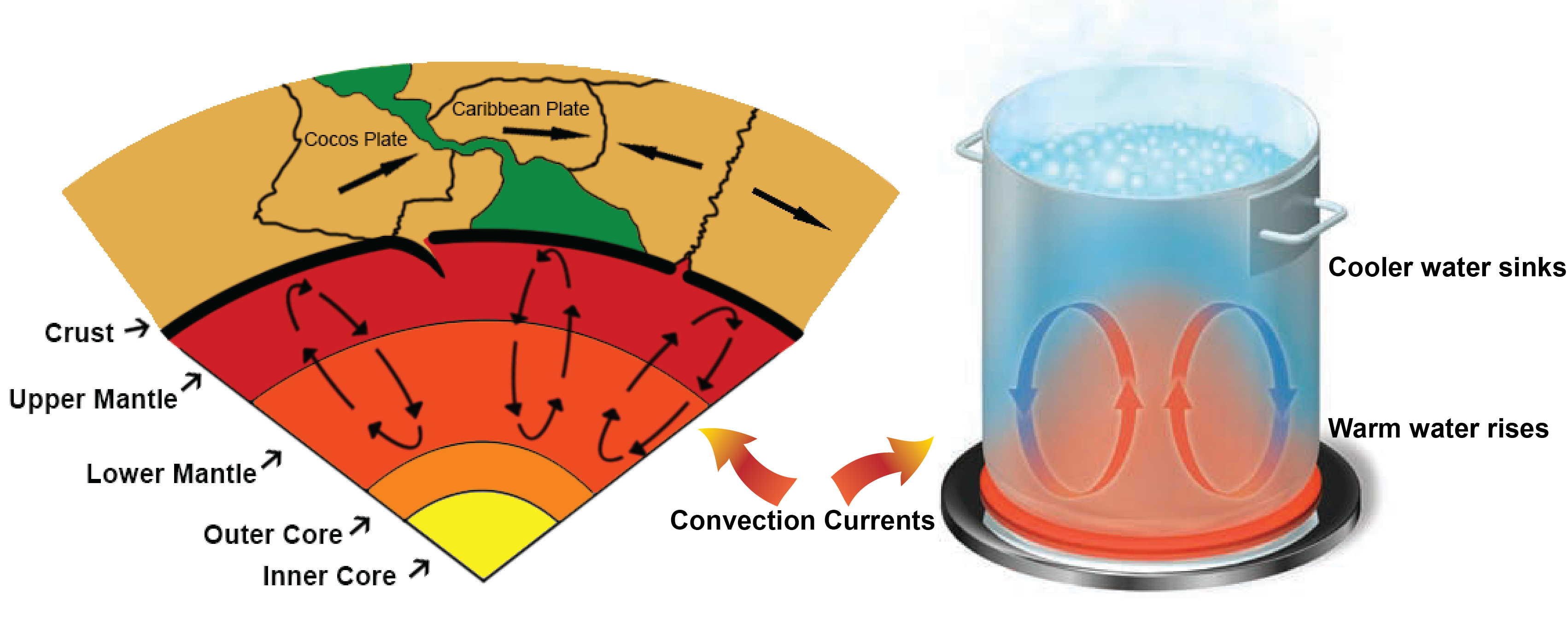 Figure 2. View of the Earth's different layers and convection currents that transform the Earth's crust