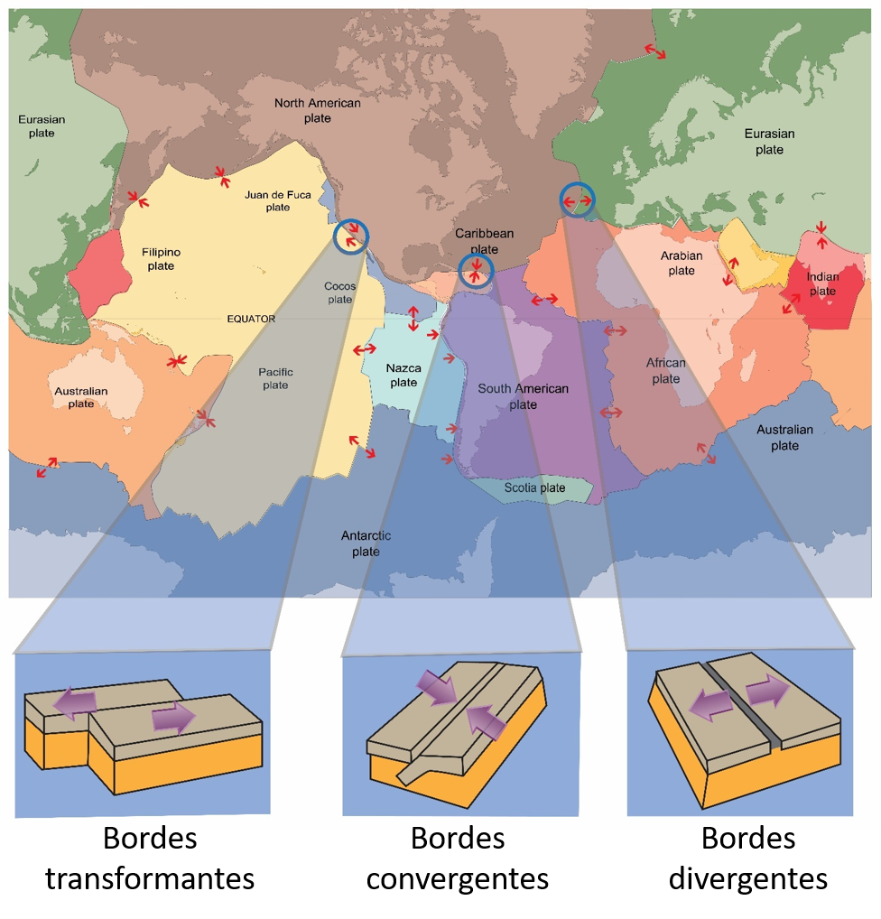 Figura 3. Mosaico de las placas tectónicas y su movimiento relativo.